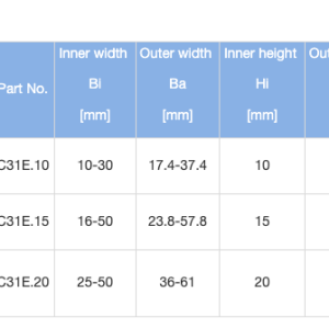 – Chiều rộng bên trong: 15 – 50 mm
