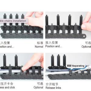 – Ứng dụng cho các yêu cầu về xích nhựa dẫn cáp cho phòng sạch, xích nhựa dẫn cáp chống bám bụi.
