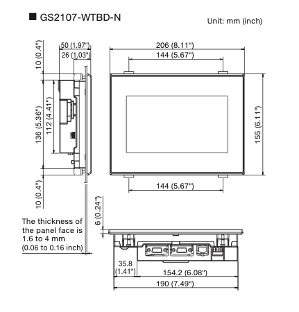 2. Kích thước trực quan của màn hình GS2107-WTBD-N