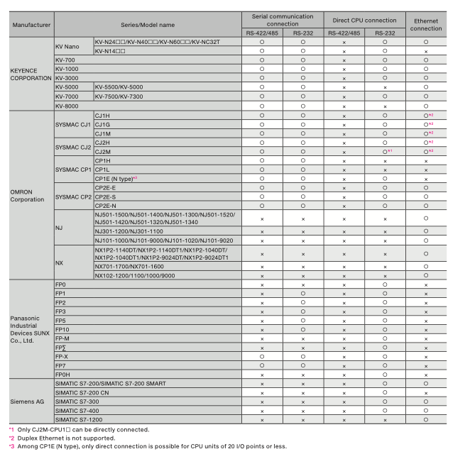 4. Các dòng PLC có thể kết nối với màn hình GS2107-WTBD-N